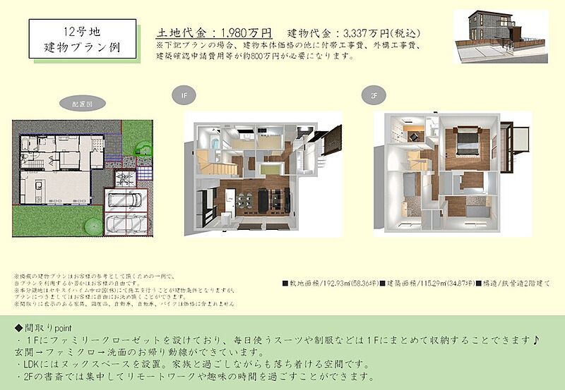 | 建物面積 | - | 土地面積 | 170.80m2(52.27坪)~192.93m2(58.36坪) |