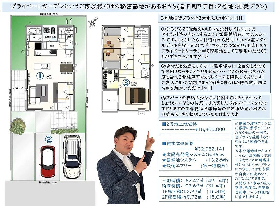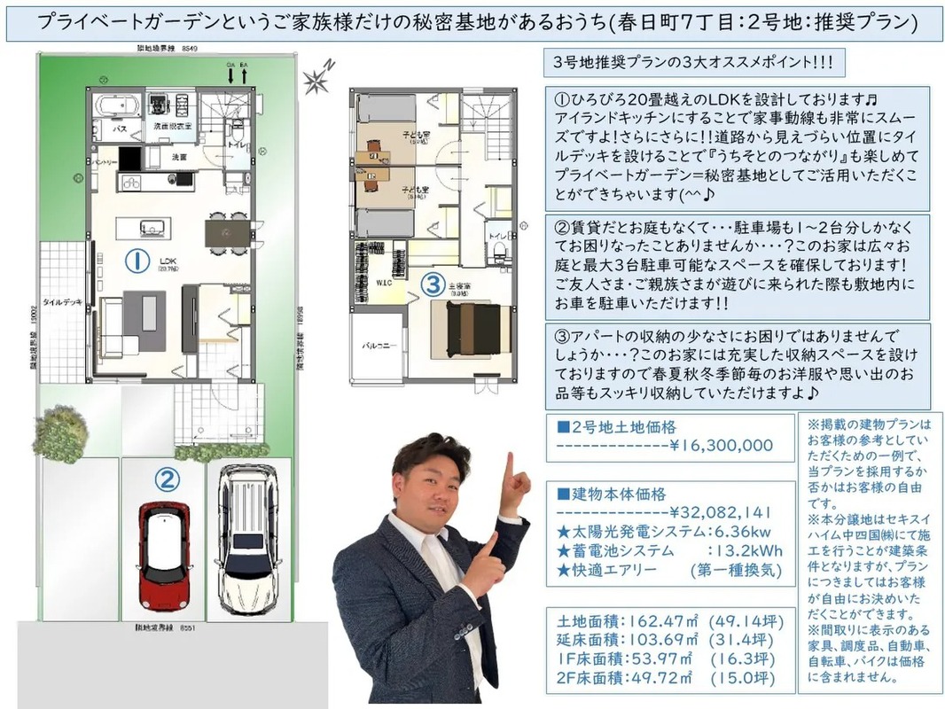 | 建物面積 | - | 土地面積 | 162.47m2(49.14坪)~162.55m2(49.17坪) |