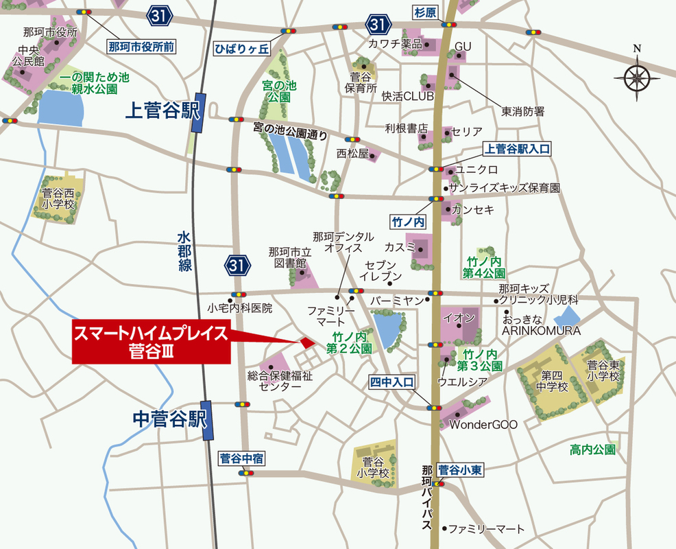 JR水郡線「上菅谷」駅 (1110m 徒歩14分)