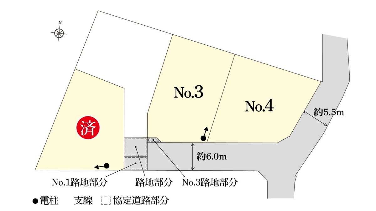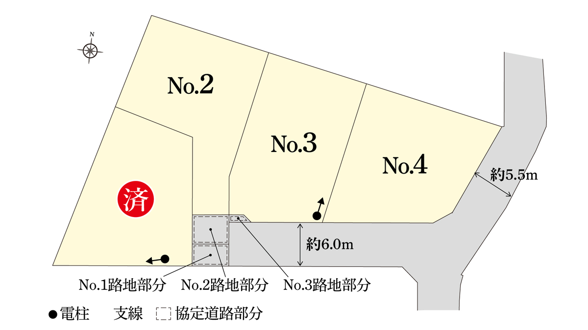 | 駐車場 | - | 道路の幅員 | 東側5.5m公道、分譲地内6.0m公道(アスファルト舗装) |