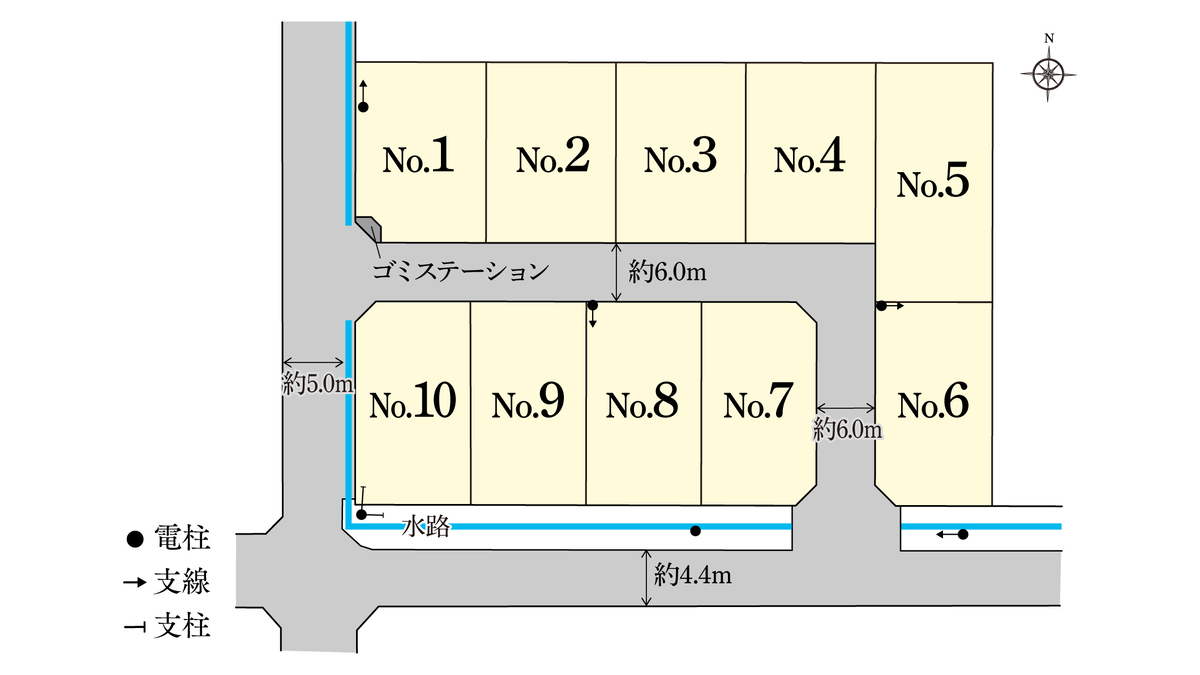 | 駐車場 | - | 道路の幅員 | 西側5.0m、南側4.4m、分譲地内6.01m公道(アスファルト舗装) |