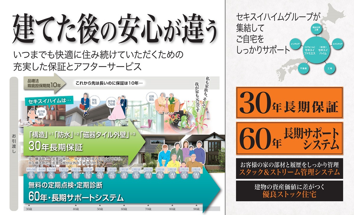「太陽光発電+蓄電池+スマートハイムナビ」と「充実した保証+アフターサービス」で安心で豊かな生活を守ります。