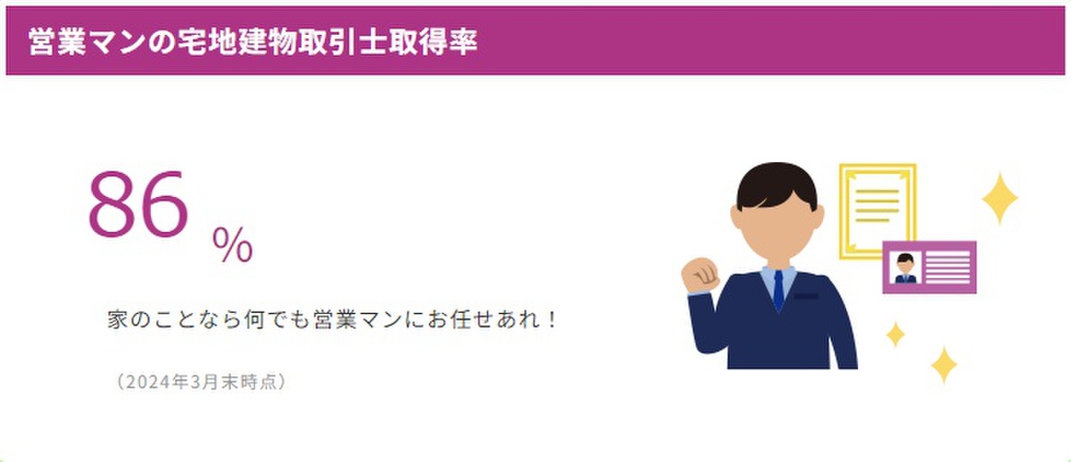 ◎営業マンの宅地建物取引士取得率 86%! (2024年4月1日時点)