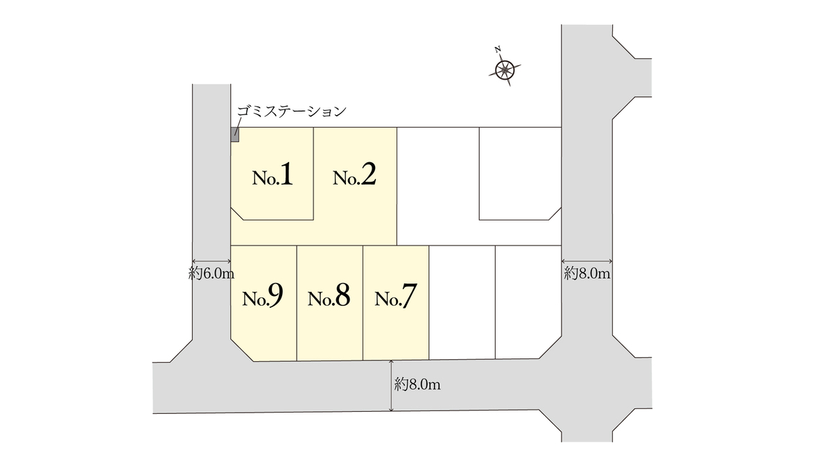 | 建物面積 | - | 土地面積 | 182.91m2(1区画)~297.51m2(1区画) |