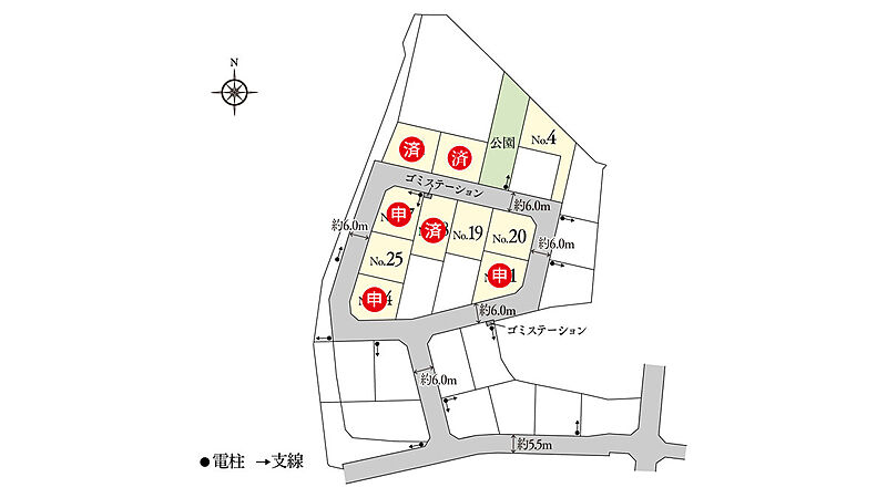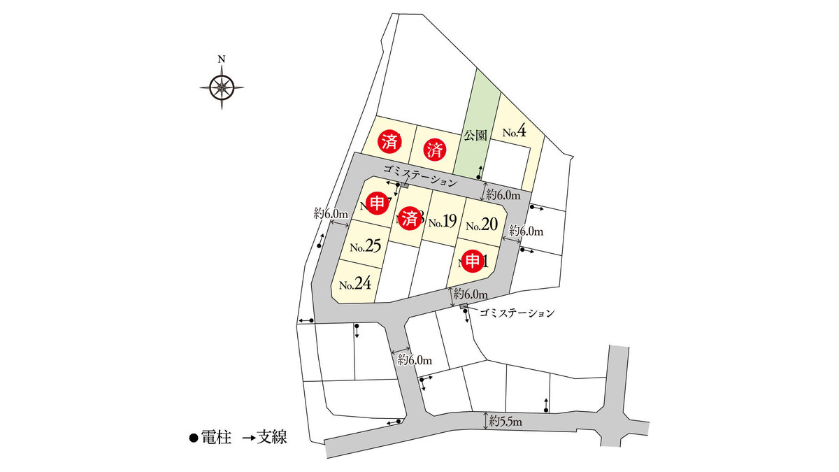 | 駐車場 | - | 道路の幅員 | 南側5.5m、分譲地内6.0m公道(アスファルト舗装) |