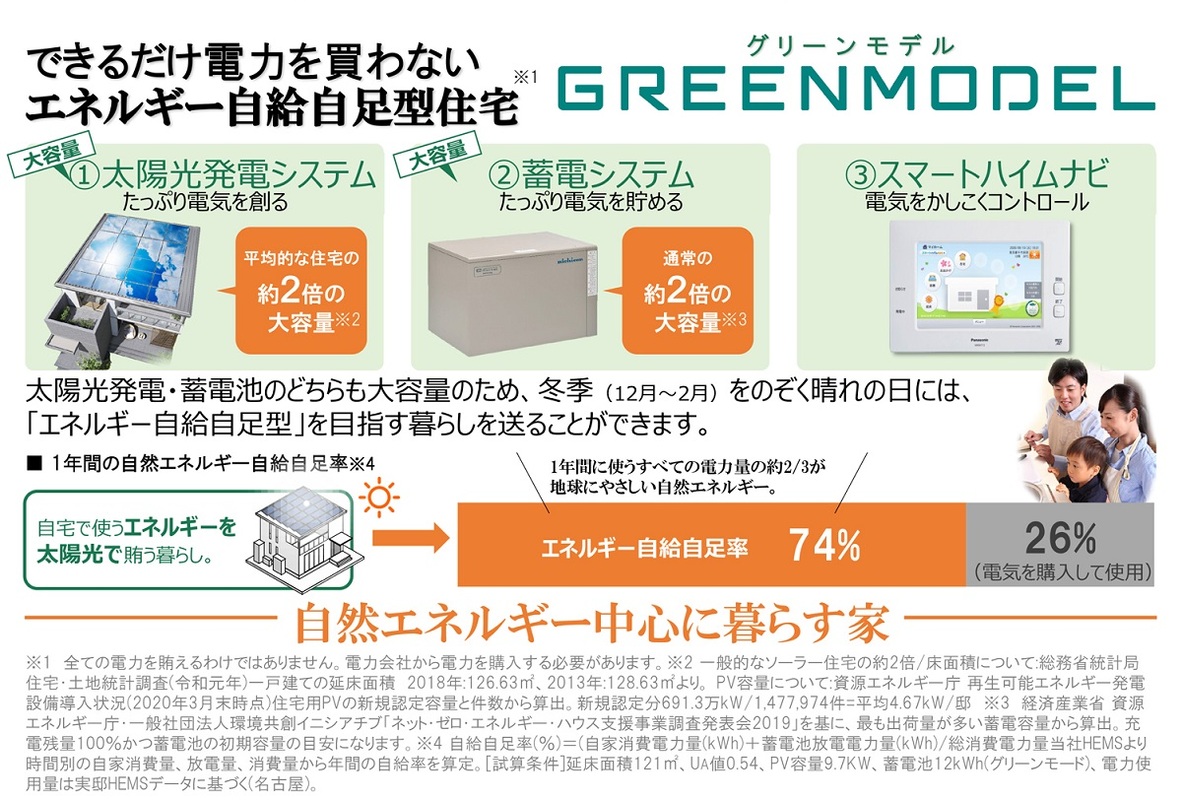 「太陽光発電+蓄電池+スマートハイムナビ」と「充実した保証+アフターサービス」で安心で豊かな生活を守ります。