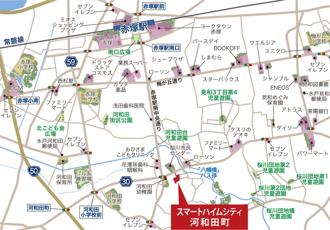 JR常磐線「赤塚」駅 茨城交通「八幡橋」 徒歩3分~4分 |