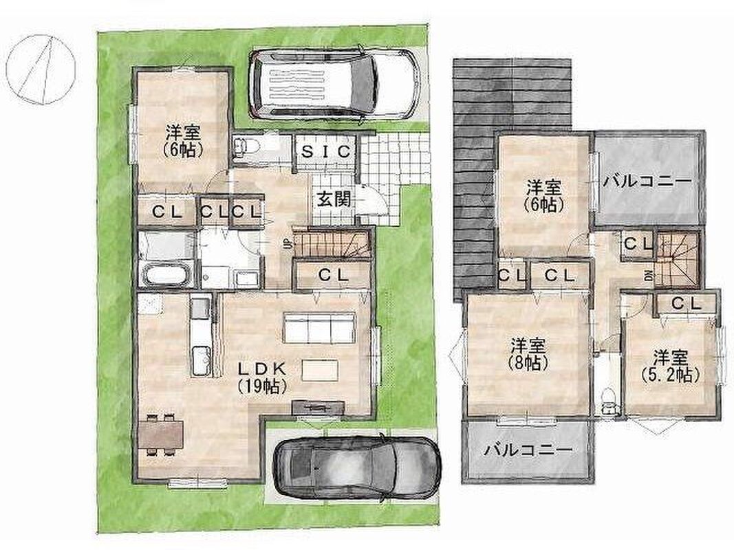 - ※完成予想図やCG合成画像は、門塀・植栽・庭・外観等、実際とは多少異なる場合があります。