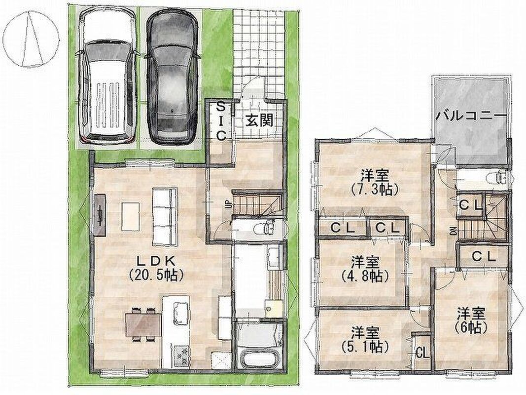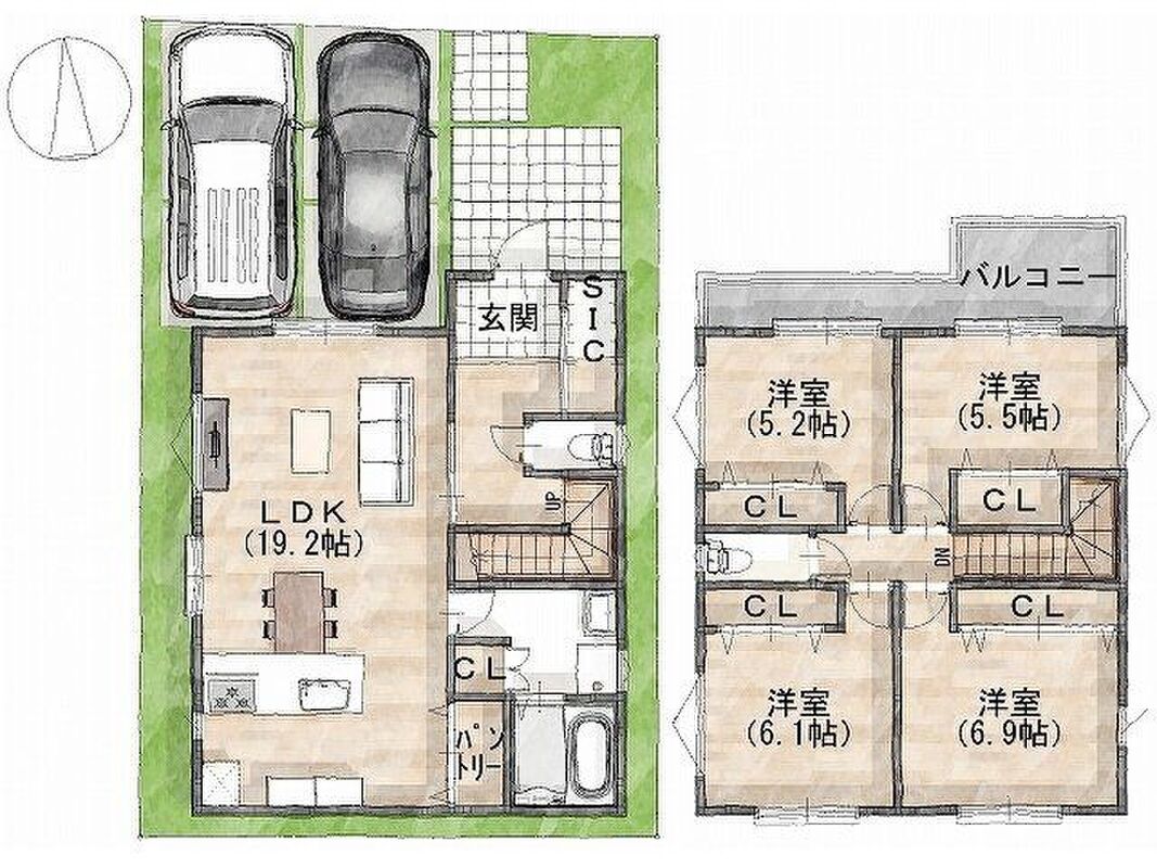 - ※完成予想図やCG合成画像は、門塀・植栽・庭・外観等、実際とは多少異なる場合があります。