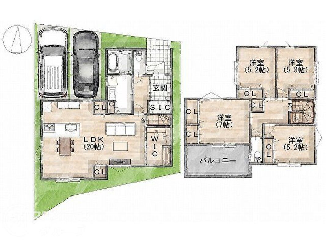 - ※完成予想図やCG合成画像は、門塀・植栽・庭・外観等、実際とは多少異なる場合があります。