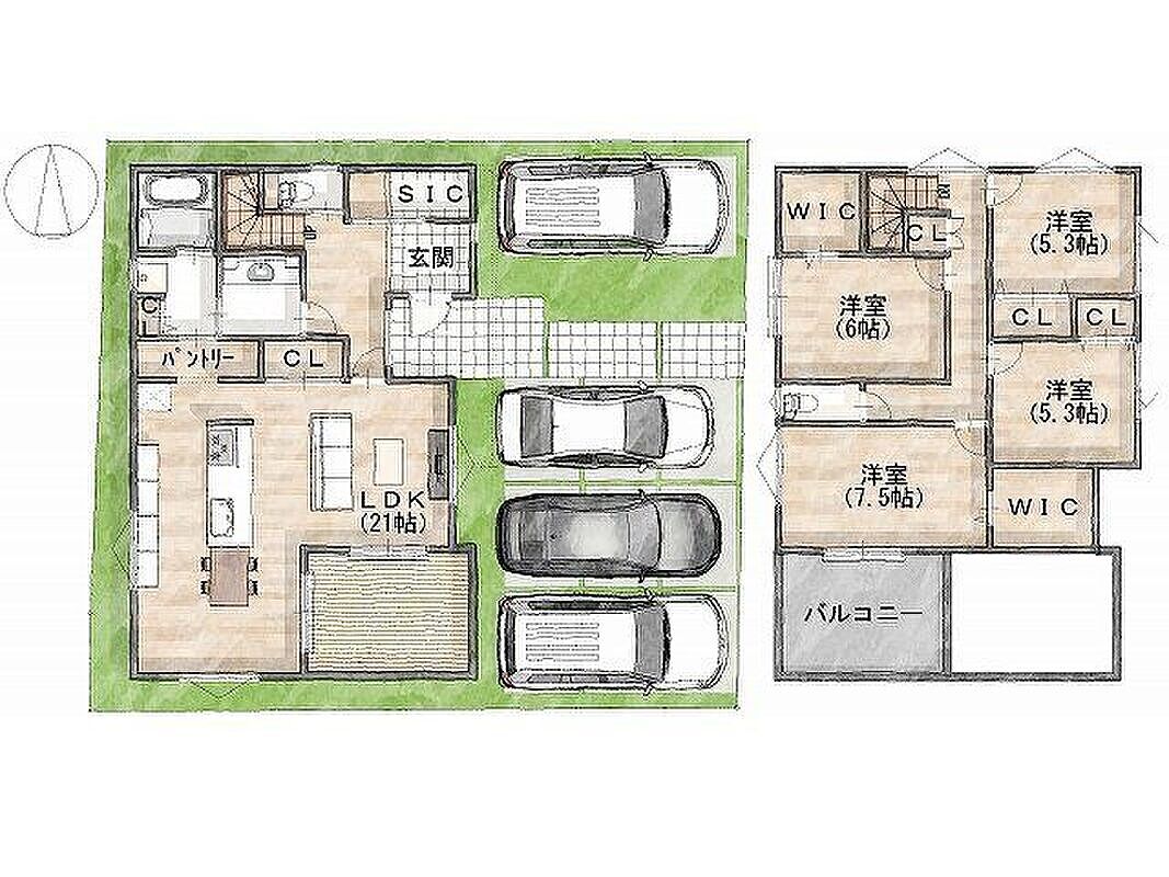 - ※完成予想図やCG合成画像は、門塀・植栽・庭・外観等、実際とは多少異なる場合があります。