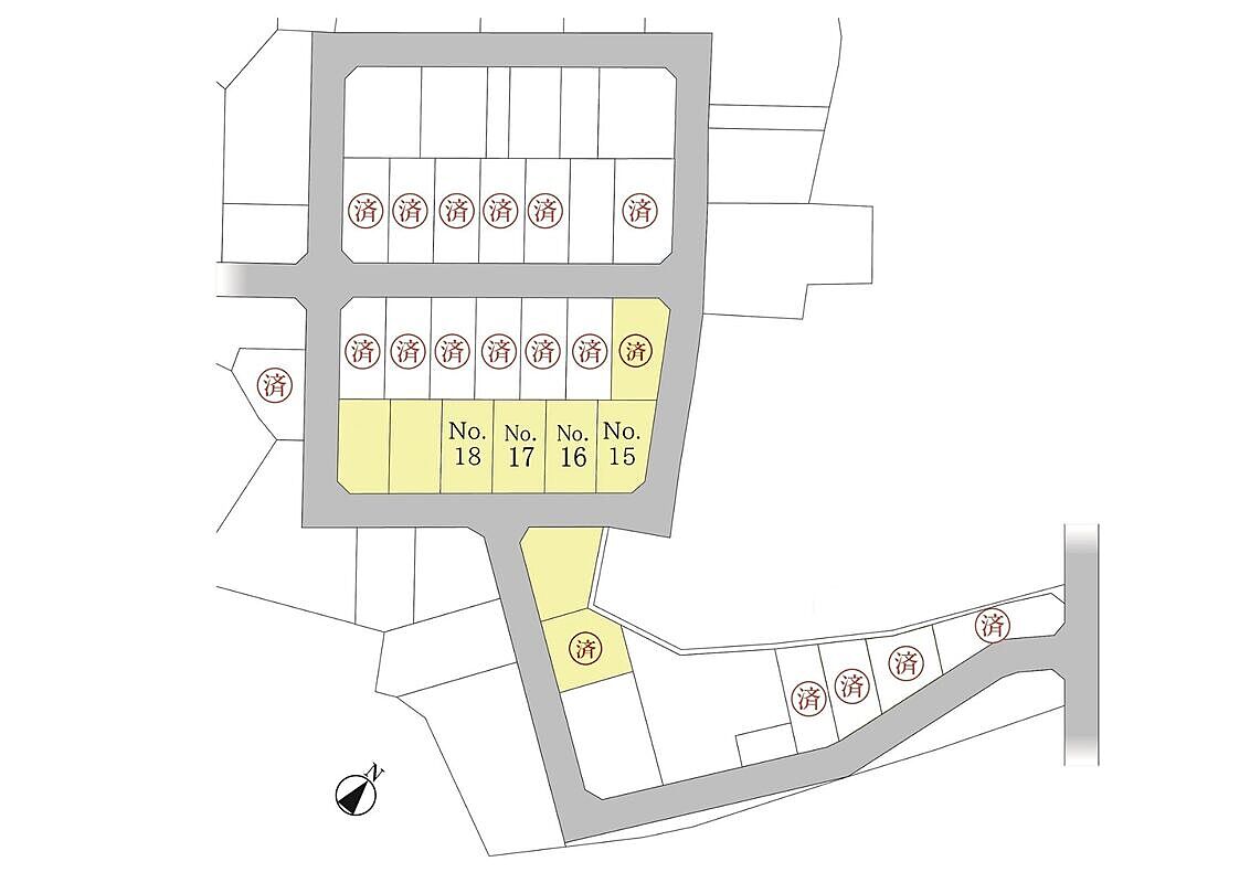 | 建物面積 | - | 土地面積 | 【No.15】154.27m2(46.66坪)【No.16】150.41m2(45.49坪)【No.17】150.54m2(45.53坪)【No.18】150.32m2(45.47坪) |