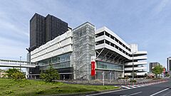 3階に子育て支援センター、市民交流プラザを設けた複合施設。