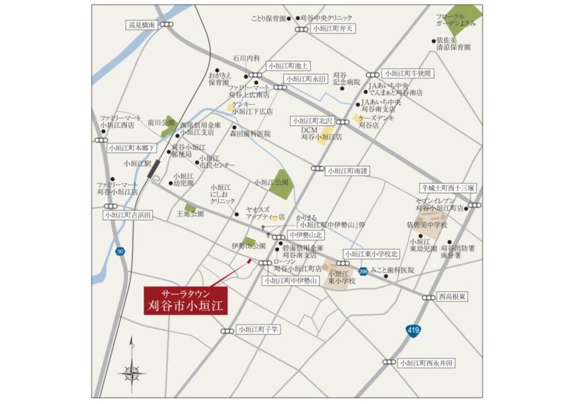 名鉄三河線「小垣江」駅 徒歩13分 刈谷市コミュニティバスかりまる「小垣江中伊勢山停」(東) 徒歩4分 |