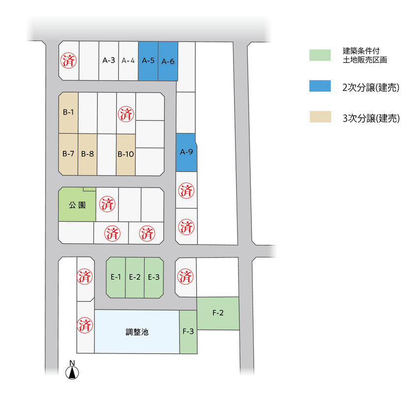 | 建築条件 | 建築条件付 建築条件付き土地とは一定期間内に、その土地に建築する建物の請負契約が締結されることを条件に販売される土地のことです。 土地売買契約締結後、建築請負会社と購入した土地に建築する建物について協議することになります。広告に参考プランが掲載されている場合でも、プランは一例であり、実際の建築プランは建築請負会社と土地購入者で協議・検討することが可能です。 期間内に建築プランが決まらず建築請負契約が成立しなければ土地売買契約は白紙となり、支払済みの金銭はすべて返還されます。 建築請負会社が指定されている場合と指定されていない場合があります。 また、建築条件付き土地の価格には、建物価格は含まれません。 |