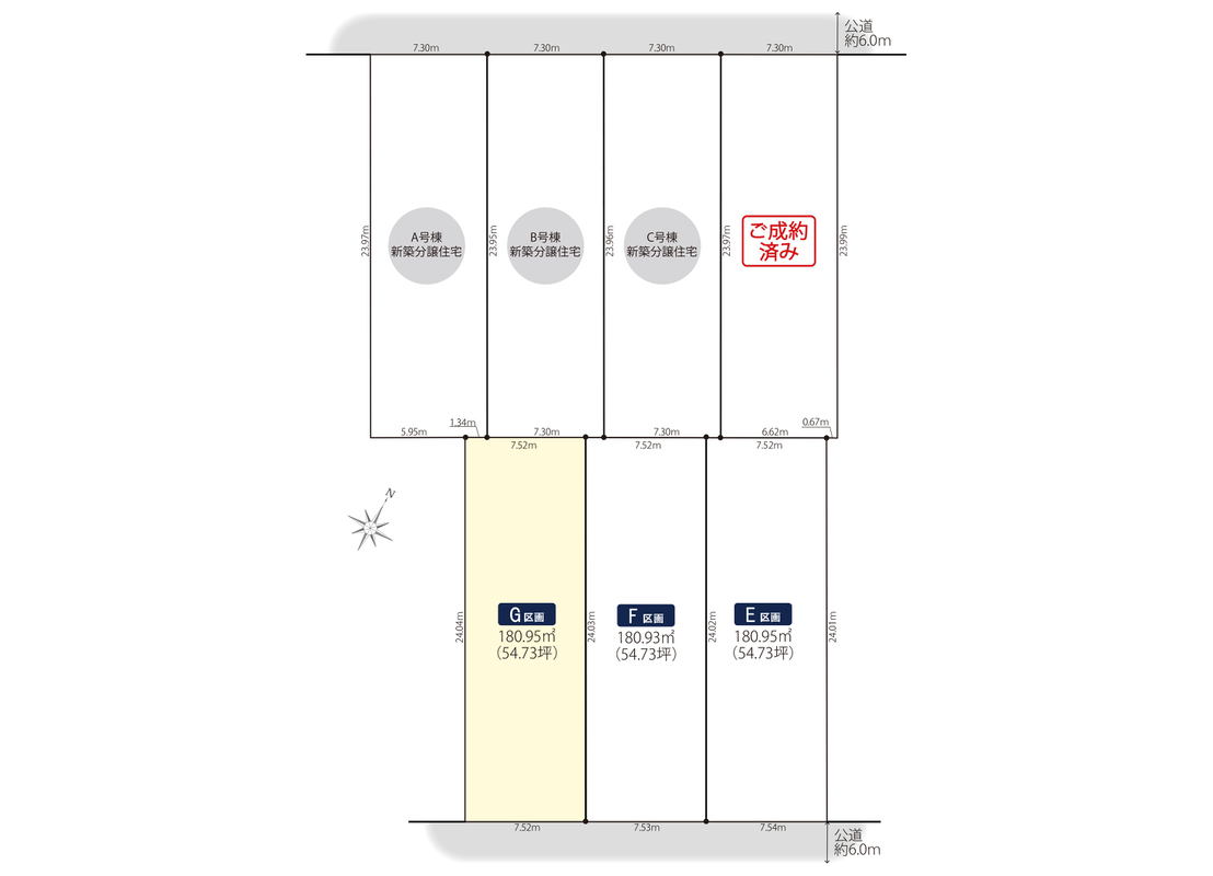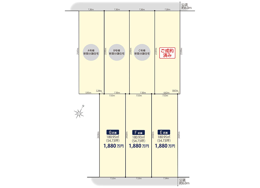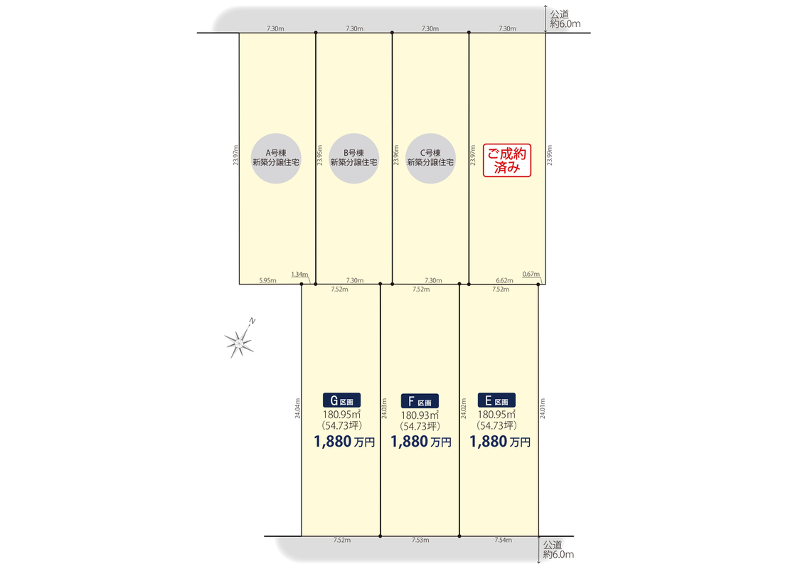 | 建物面積 | - | 土地面積 | 180.93m2(F区画)~180.95m2(E・G区画) |
