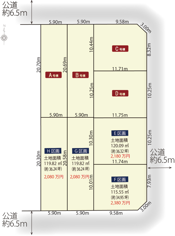 | 販売価格 | 2,080万円~2,380万円 | 最多価格帯 | 2,080万円(2区画) |