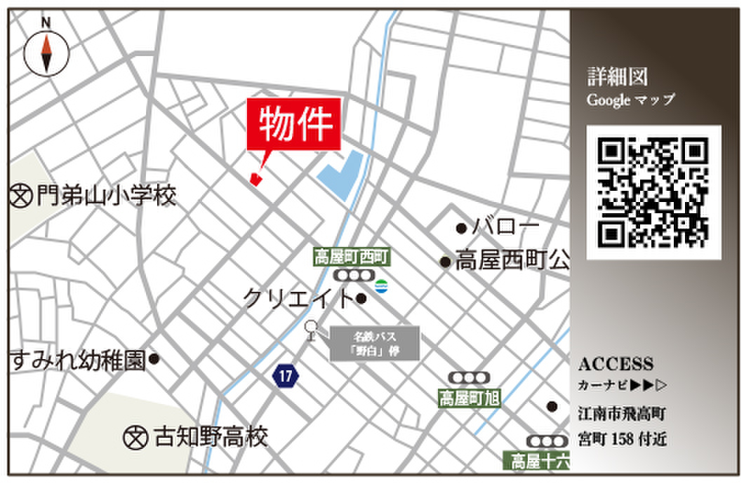 名鉄犬山線「江南」駅 徒歩24分 名鉄犬山線「江南」駅 名鉄バス「野白」停 徒歩6分 名鉄犬山線「柏森」駅 徒歩44分 |