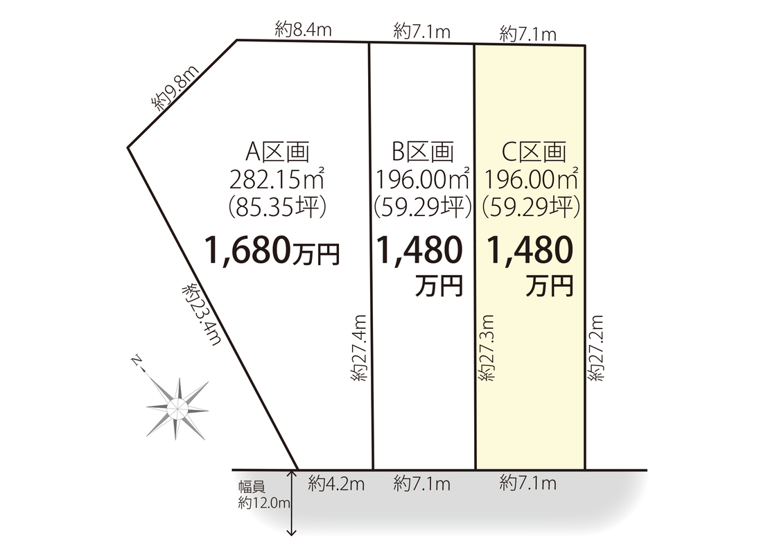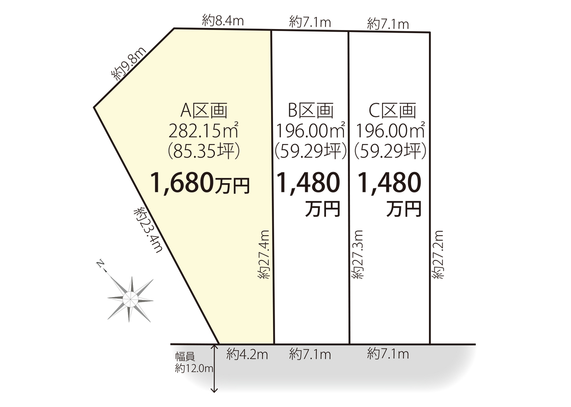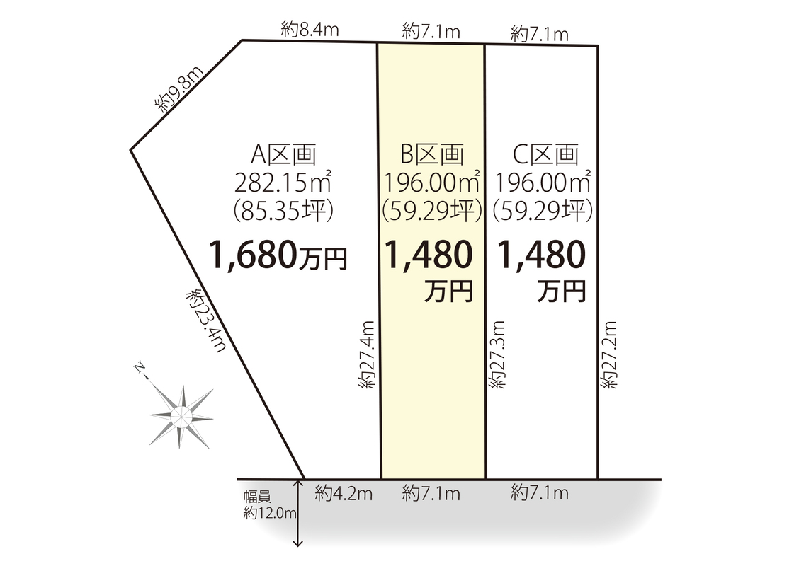 | 建物面積 | - | 土地面積 | 196m2(B、C区画)~282.15m2(A区画) |