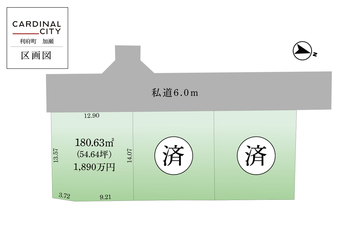 | 駐車場 | - | 道路の幅員 | 西側私道6.00m(私道負担面積377.57m2/持分8分の1) |