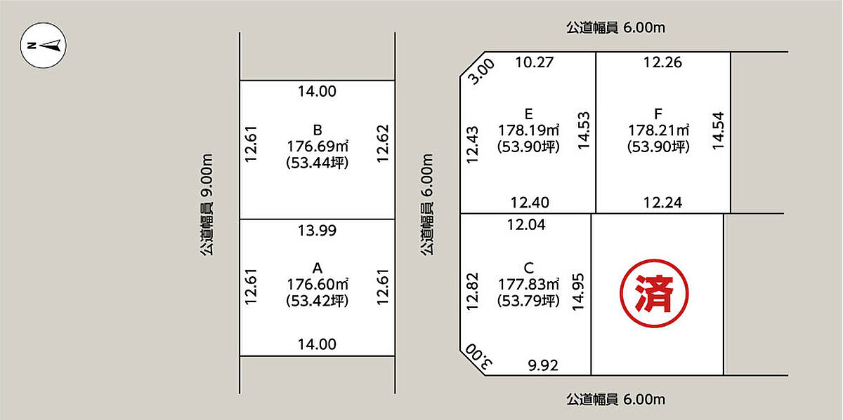 | 駐車場 | - | 道路の幅員 | 公道9.00m/公道6.00m |