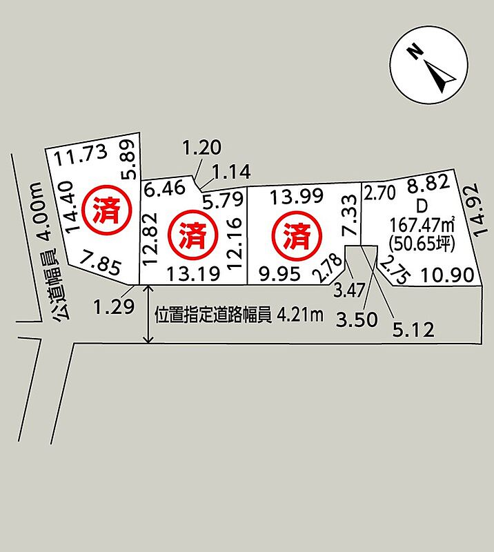 | 備考 | 他の法令制限/外壁後退距離制限1.0m、絶対高さ制限10m、敷地面積の最低限度150m2、北側斜線制限、道路斜線制限。※【D】私道位置指定道路213.88m2(地番459番8)に持ち分1/8(26.73m2)有り。私道位置指定道路に県営水道事業による長野県の地上権有り。下水道受益者負担有り。※参考プランに関わらず自由に設計することができます。※給排水設備費、付帯工事費、諸費用、外構費用等は別途かかります。 | ||