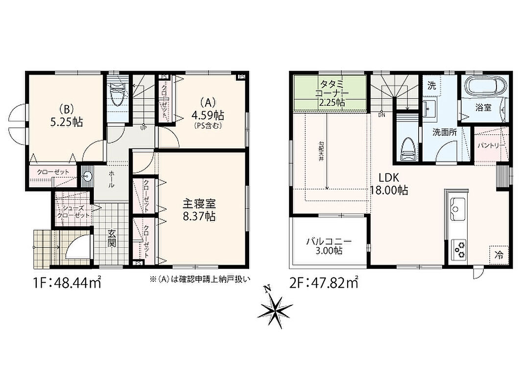 【2階建 3LDK TAKIHOUSE参考建物プラン】2階建参...