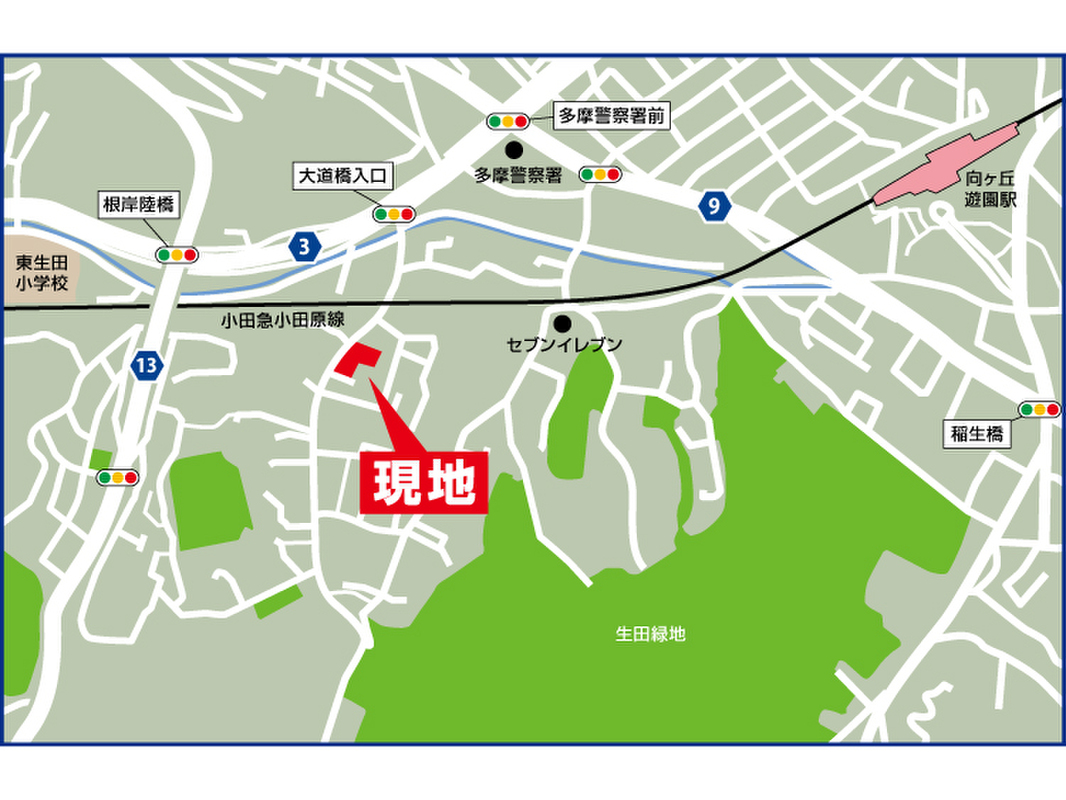 小田急小田原線「向ヶ丘遊園」駅 徒歩12分 小田急小田原線「生田」駅 徒歩23分 JR南武線「登戸」駅 徒歩24分 |