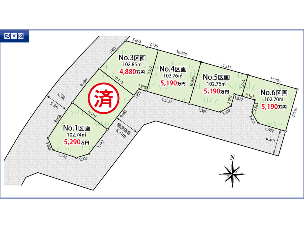 - 1号区画:5,290万円 3号区画:4,880万円 4号区画:5,190万円 5号区画:5,190万円 6号区画:5,190万円
