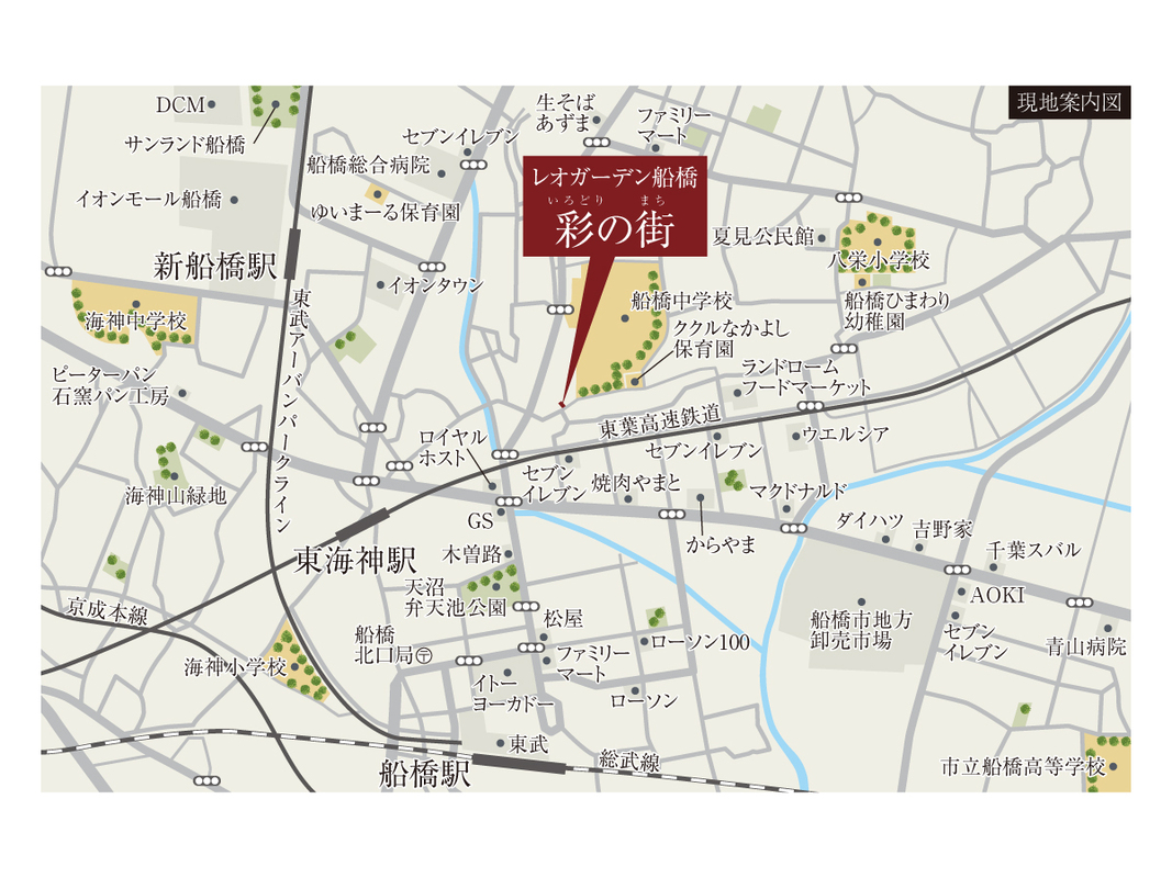 - JR総武本線「船橋」駅 徒歩10分~10分東葉高速鉄道「東海神」駅 徒歩7分~7分