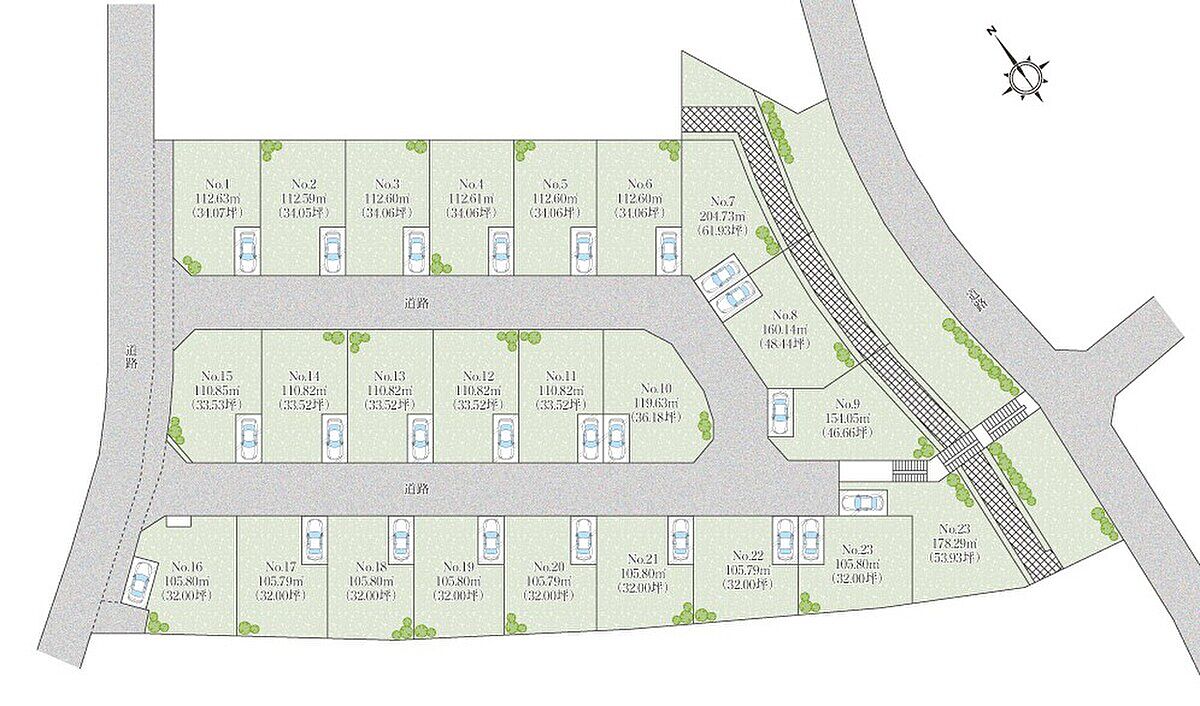 | 建物面積 | - | 土地面積 | 105.79m2~204.73m2(24区画) |