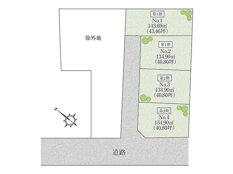 | 建物面積 | - | 土地面積 | 134.74m2~143.01m2(4区画) |
