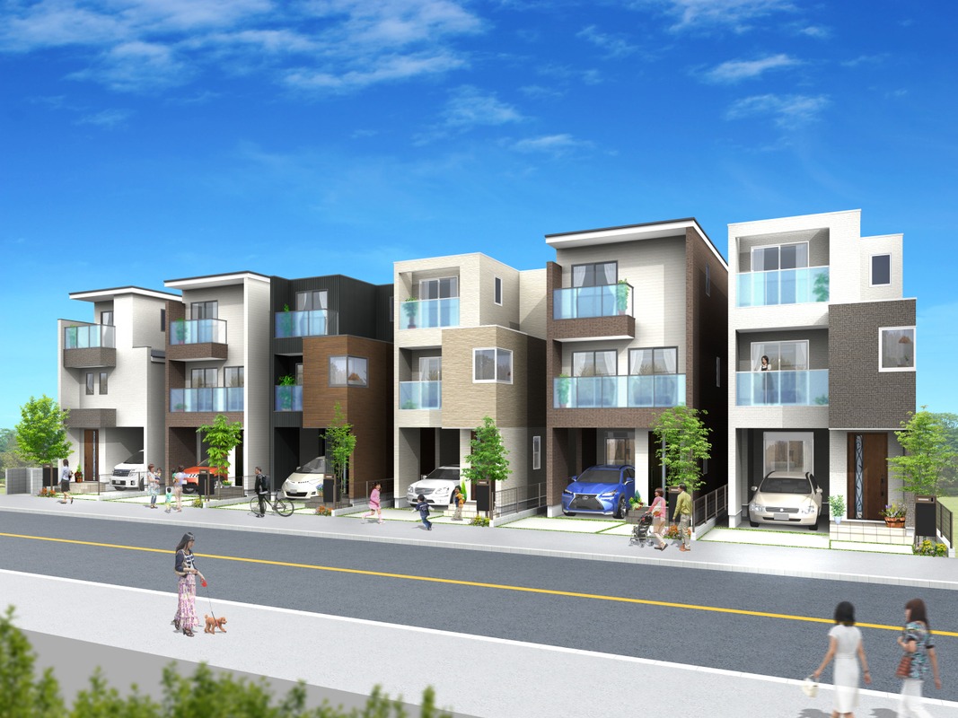 大型分譲地を中心に、その地域に合わせた街づくりを計画し、一棟ごとにフリープランで建築・施工するので、