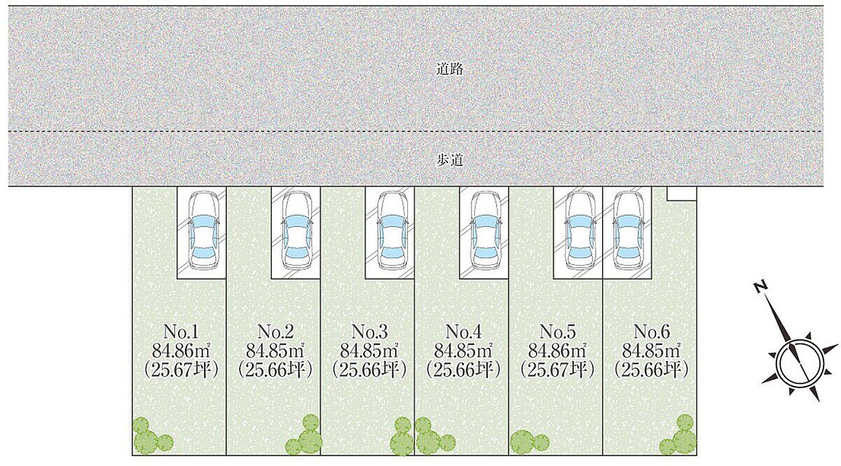 | 建物面積 | - | 土地面積 | 84.85m2~84.86m2(6区画) |