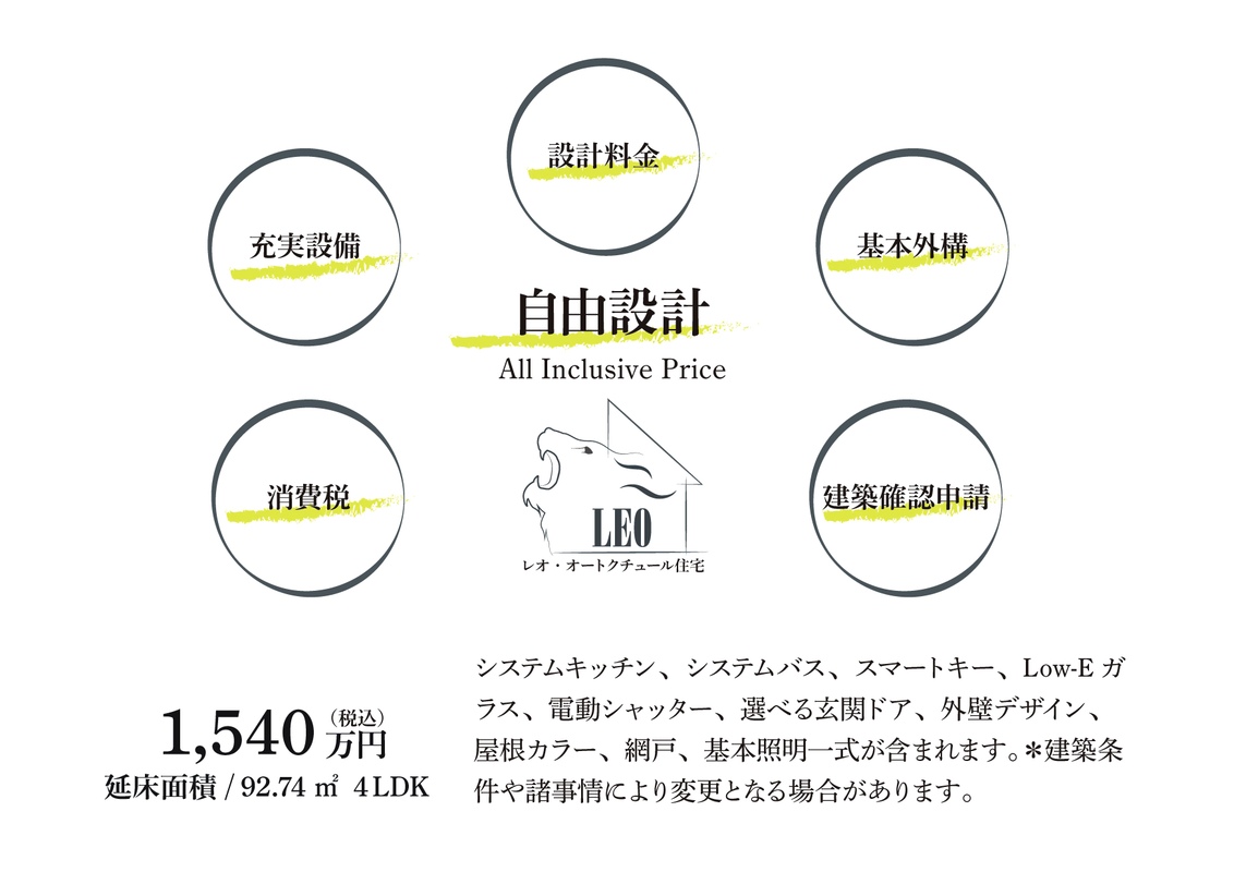 自由設計のレオ・想いを形にする自由設計の住まい相談オートクチュール住宅は、家族の未来を描くプロジェクト。ライフスタイルに寄り添いながら、間取りやデザインを自由に組み立てていきます。選ぶ楽しさ、考える楽しさ、完成を待つ楽しさ。そのすべてが思い出になります。住まいが完成した瞬間から、新しい物語が始まる特別な一邸です。