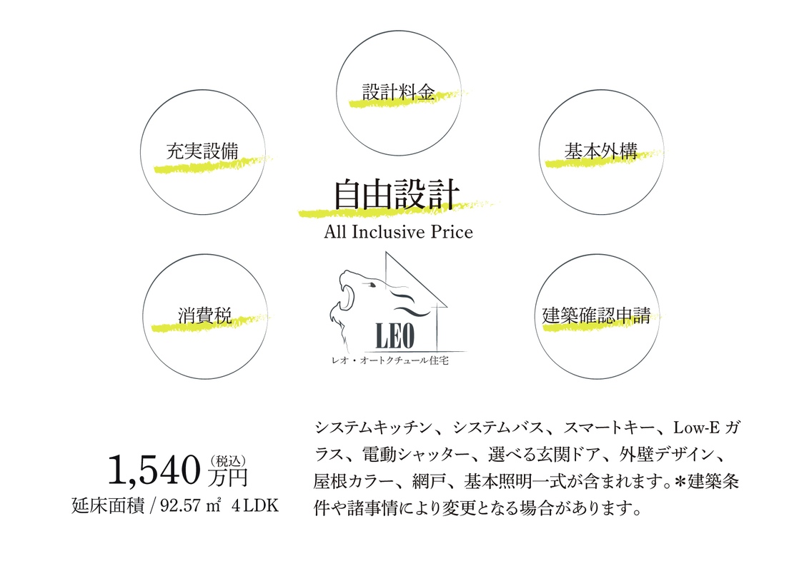 自由設計のレオ・想いを形にする自由設計の住まい相談オートクチュール住宅は、家族の未来を描くプロジェクト。ライフスタイルに寄り添いながら、間取りやデザインを自由に組み立てていきます。選ぶ楽しさ、考える楽しさ、完成を待つ楽しさ。そのすべてが思い出になります。住まいが完成した瞬間から、新しい物語が始まる特別な一邸です。