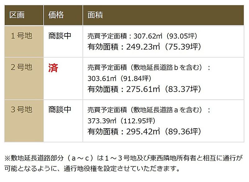 | 駐車場 | - | 道路の幅員 | 4m(私道負担あり 2号地:28.91m2 3号地:64.49m2) |