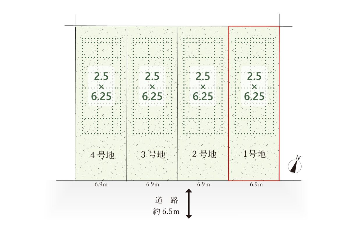 | 駐車場 | - | 道路の幅員 | 私道負担なし、南側幅員約6.5mの公道に接する |