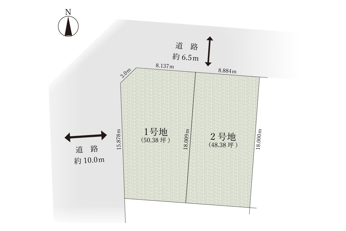 魅力1 北西角地を含む2区画/敷地面積48坪・50坪