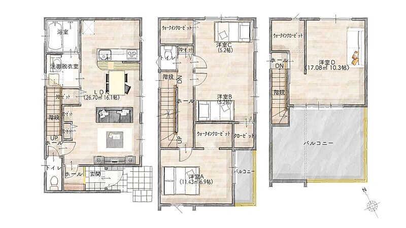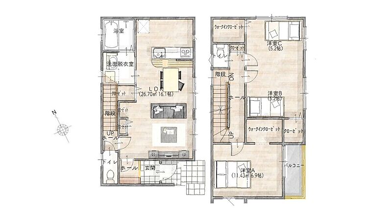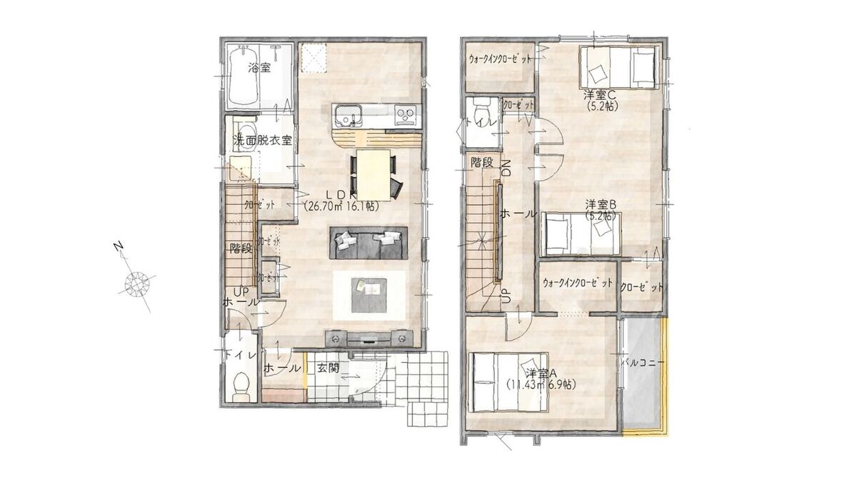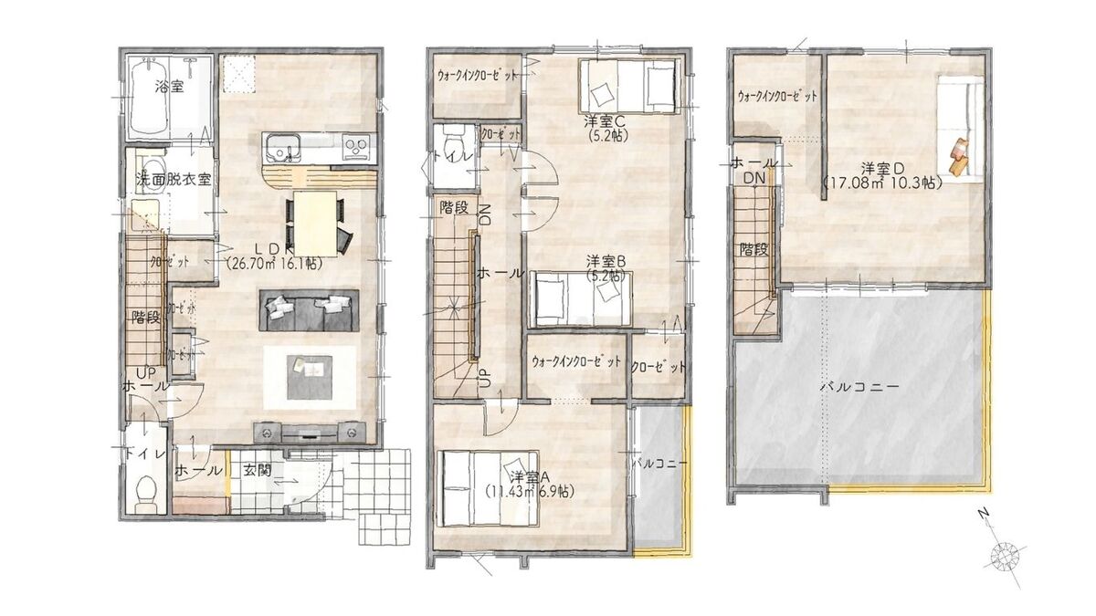 - ※完成予想図やCG合成画像は、門塀・植栽・庭・外観等、実際とは多少異なる場合があります。