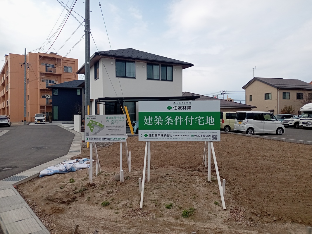 | 建築条件 | 建築条件付 建築条件付き土地とは一定期間内に、その土地に建築する建物の請負契約が締結されることを条件に販売される土地のことです。 土地売買契約締結後、建築請負会社と購入した土地に建築する建物について協議することになります。広告に参考プランが掲載されている場合でも、プランは一例であり、実際の建築プランは建築請負会社と土地購入者で協議・検討することが可能です。 期間内に建築プランが決まらず建築請負契約が成立しなければ土地売買契約は白紙となり、支払済みの金銭はすべて返還されます。 建築請負会社が指定されている場合と指定されていない場合があります。 また、建築条件付き土地の価格には、建物価格は含まれません。 |