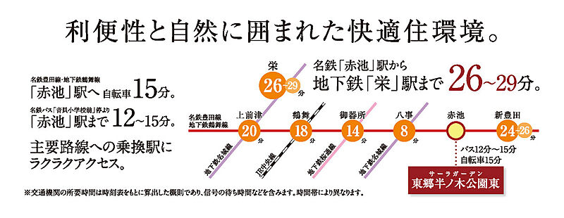 名古屋市営鶴舞線「赤池」駅 徒歩40分 名鉄豊田線「赤池」駅 徒歩40分 |