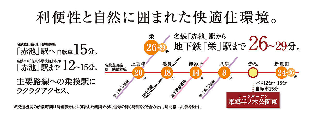 地下鉄鶴舞線「赤池」駅、名鉄豊田線「赤池」駅 (3,180m 自転車15分)