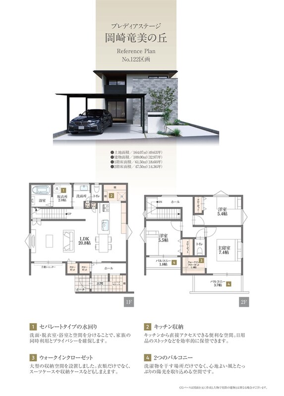 - ※完成予想図やCG合成画像は、門塀・植栽・庭・外観等、実際とは多少異なる場合があります。