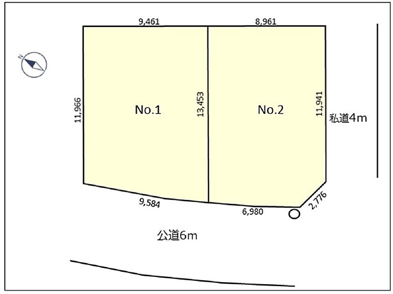 | 駐車場 | - | 道路の幅員 | 南西側6m(公道)、南東側4m(私道) |