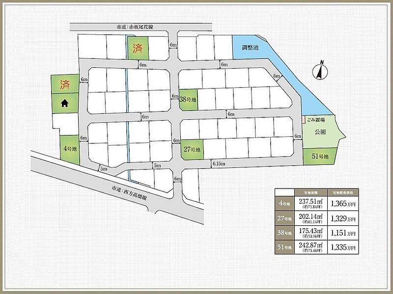 | 駐車場 | - | 道路の幅員 | 道路幅:約6.0m・約6.15m・約5.0m 私道負担なし |