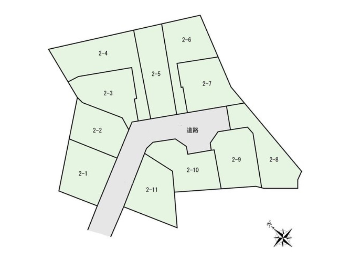 | 駐車場 | - | 道路の幅員 | 2-2:南5.5m/2-9:北東5.5m/2-5:南西5.5m/2-11:北西5.5m/2-4:南西5.5m/2-1:南5.5m/2-7:南西5.5m/2-8:北西5.5m …他 |