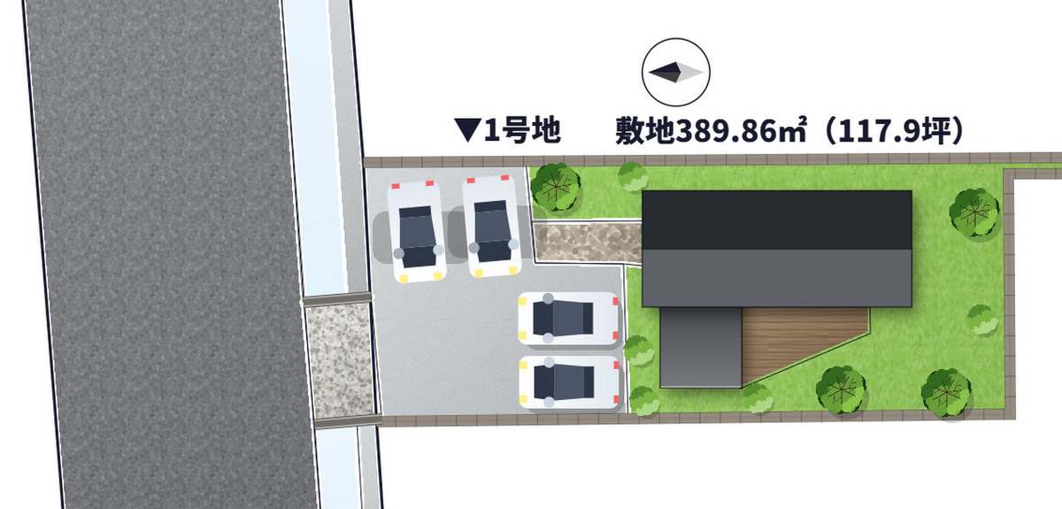- ※完成予想図やCG合成画像は、門塀・植栽・庭・外観等、実際とは多少異なる場合があります。