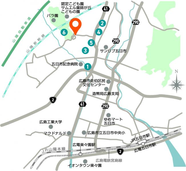 JR山陽本線「五日市」駅 徒歩43分 「」駅 広電バス「薬師ヶ丘入口」バス停 徒歩1分 |