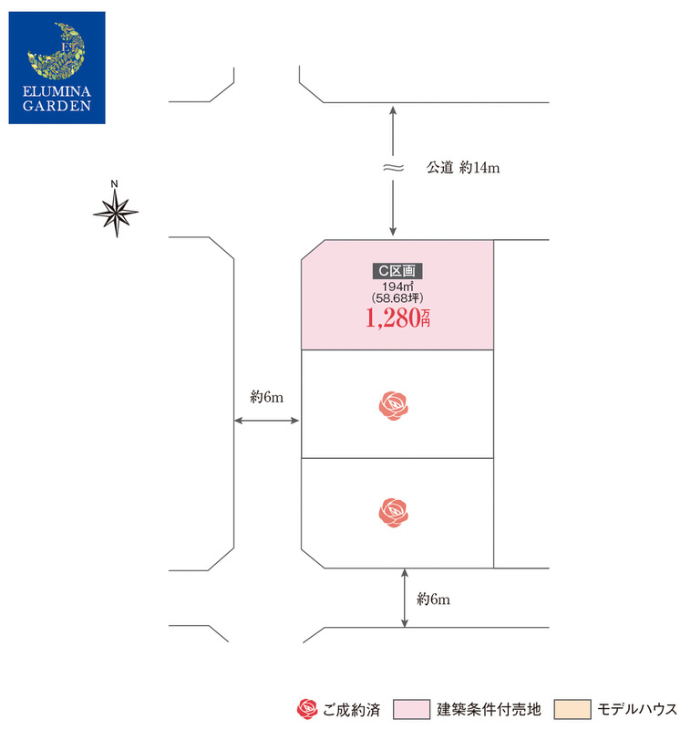 | 駐車場 | - | 道路の幅員 | 北側約14m、西側約6m、南側約6m |